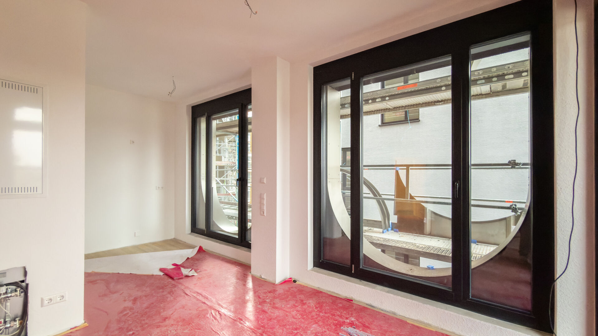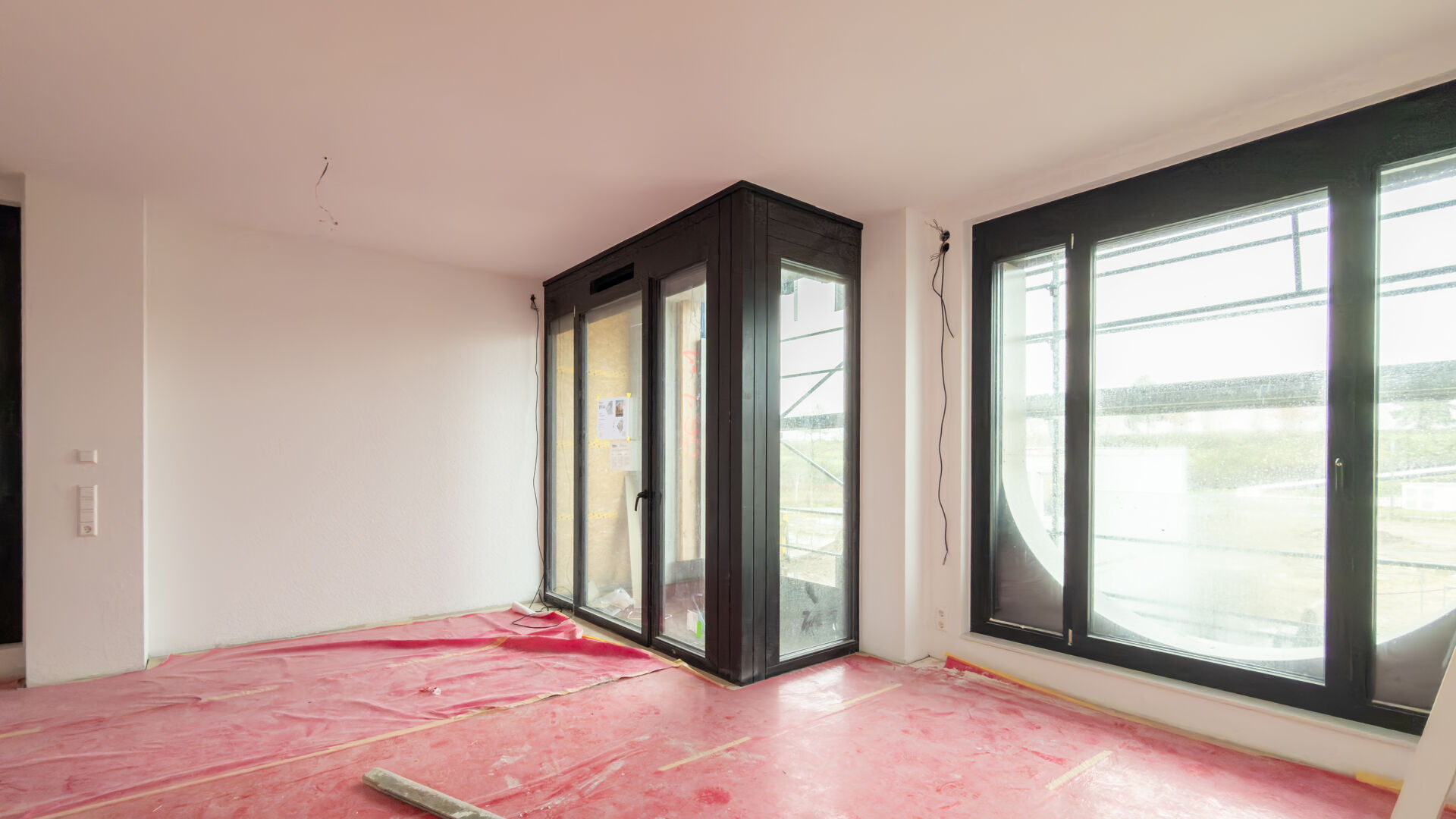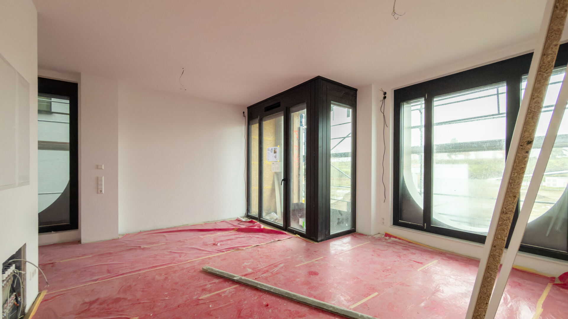 – Vinylboden; großflächige Holzfenster (3‑fach‑Verglasung).